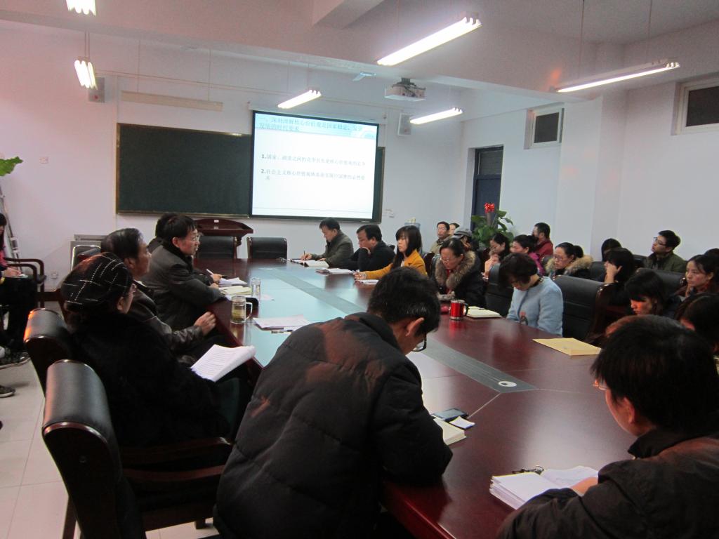 2014年12月23日下午,管理学院党支部书记娄季春教授为全体教师和部分优秀学生代表作了一场“社会主义核心价值观是国家核心竞争力”的辅导讲座。