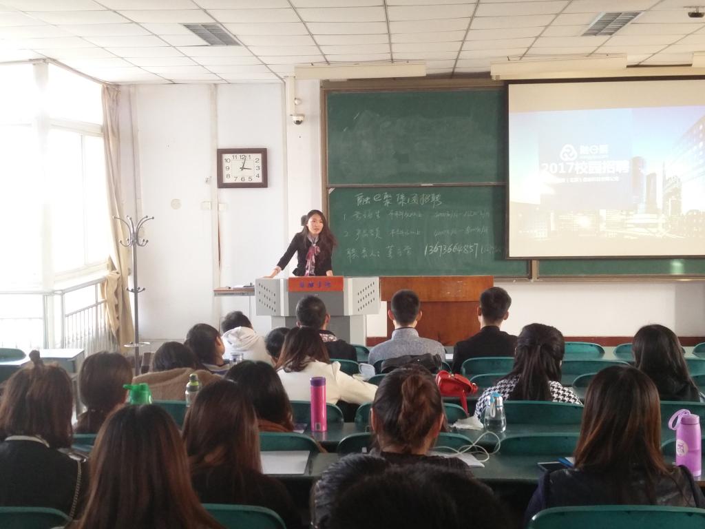 融e聚集团是一个一站式的综合金融服务平台,在宣讲会上,人事经理董培培首先向同学们播放了公司的宣传短片,对集团的发展历程、商业和盈利模式作了简要介绍,其次,董经理选取了几个管培生的真实案例,并结合自身经历向大家描述了进入公司之后的发展前景。在问答环节,针对大家的疑惑,董经理耐心解答,对公司的福利待遇、企业文化等做进一步阐述。最后,同学们都踊跃报名,有近60名同学通过当天初试进入到公司的复试阶段,为本场招聘会划上了一个圆满的句号。