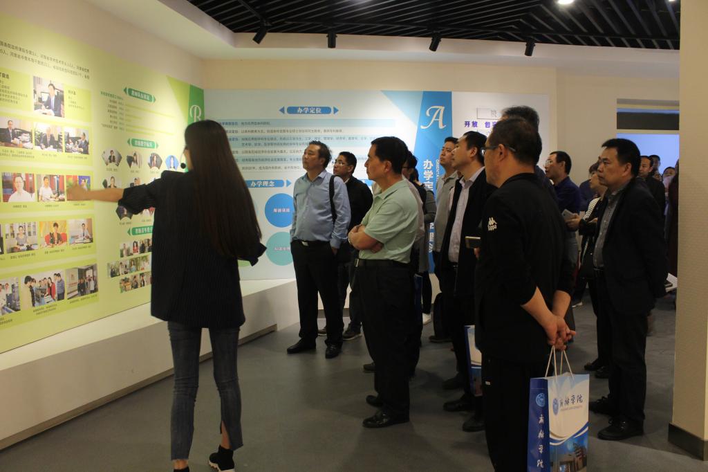 参会人员在申成玉院长的带领下先后参观了新乡学院校史馆、教育教学成果馆、牧野文化馆以及新乡学院部分实验室,各位专家对新乡学院的办学成果给予高度评价。