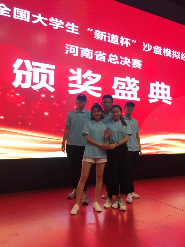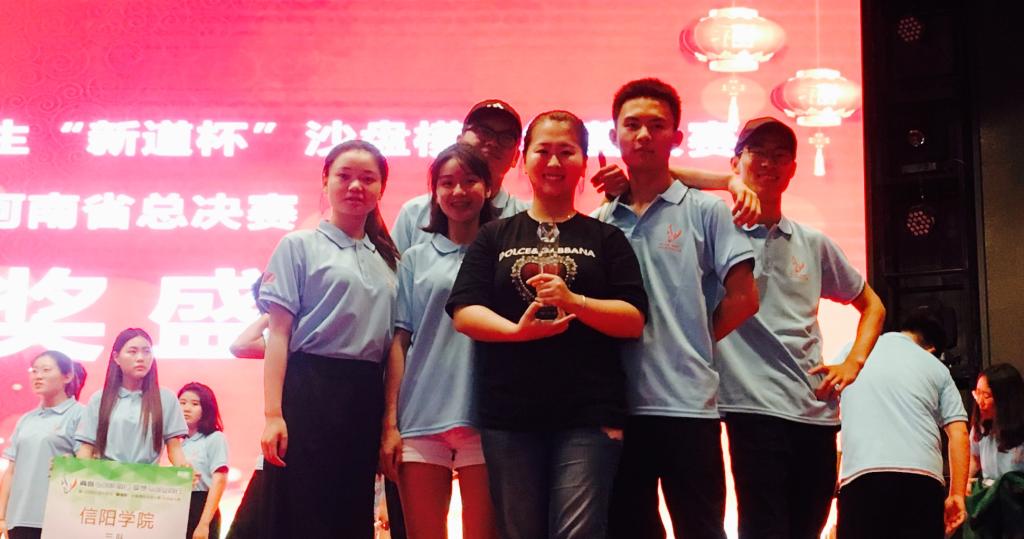 6月4日-6日第十四届全国大学生“新道杯”沙盘模拟企业经营大赛河南省总决赛在南阳理工学院举行,管理学院学生组成的新乡学院1队获得河南总决赛特等奖。