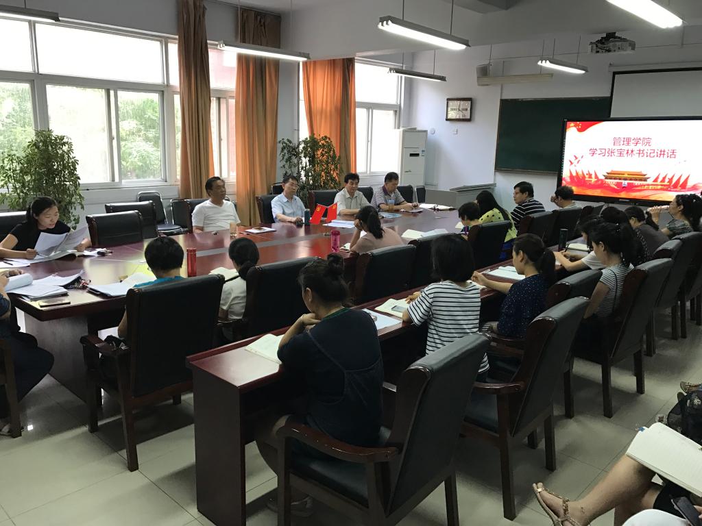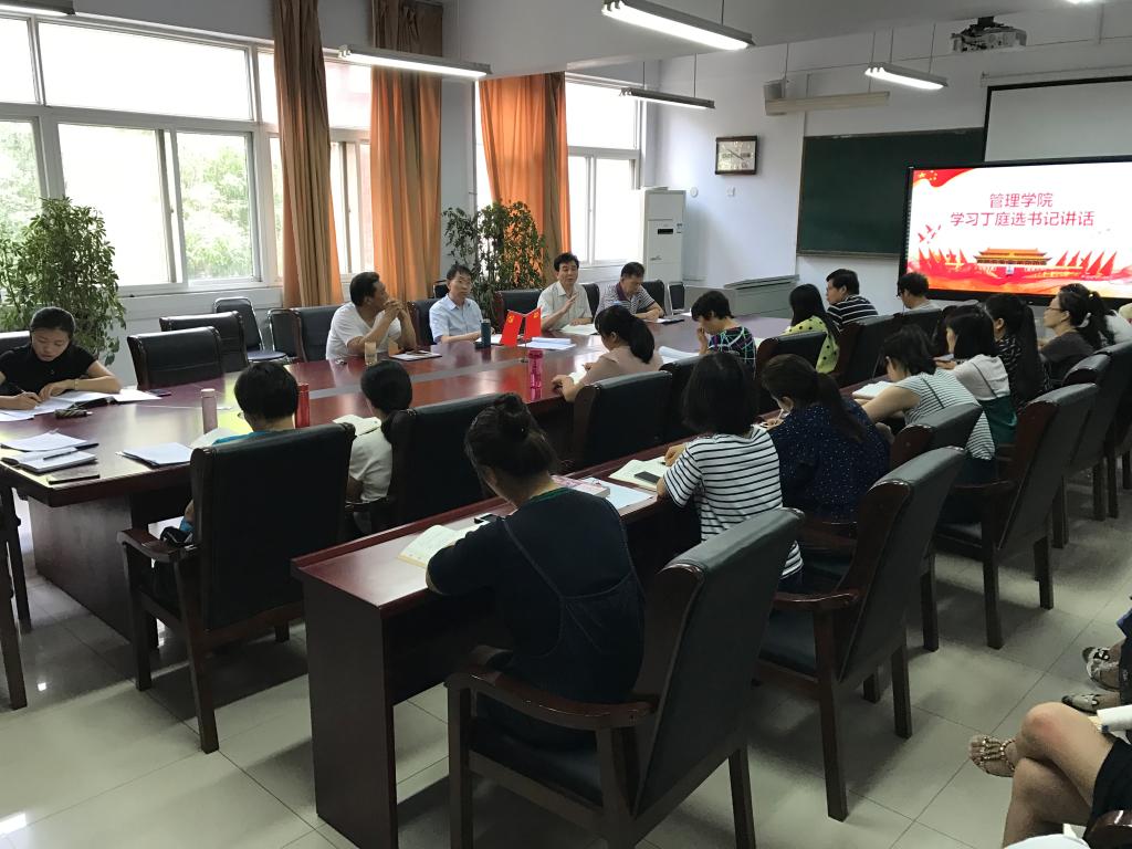 6月19日下午,管理学院组织学习校党委书记丁庭选同志和校纪委书记张宝林同志在中国共产党新乡学院第一次代表大会上的报告,会议由院党总支书记娄季春教授主持,院长申成玉教授、院党总支副书记李海鹰副教授、副院长郭丽娜副教授及全体教职工参加此次会议。
