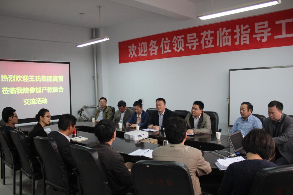 2014年4月1日下午,新乡市王氏集团王玉桥经理带领企业高级管理团队应邀请到我院参加产教融合交流活动,座谈在管理学院会议室举行。出席活动的有申成玉院长、娄季春书记、夏萍副院长、李海鹰副书记、孙江超副院长和教研室主任王春胜、郭丽娜等。