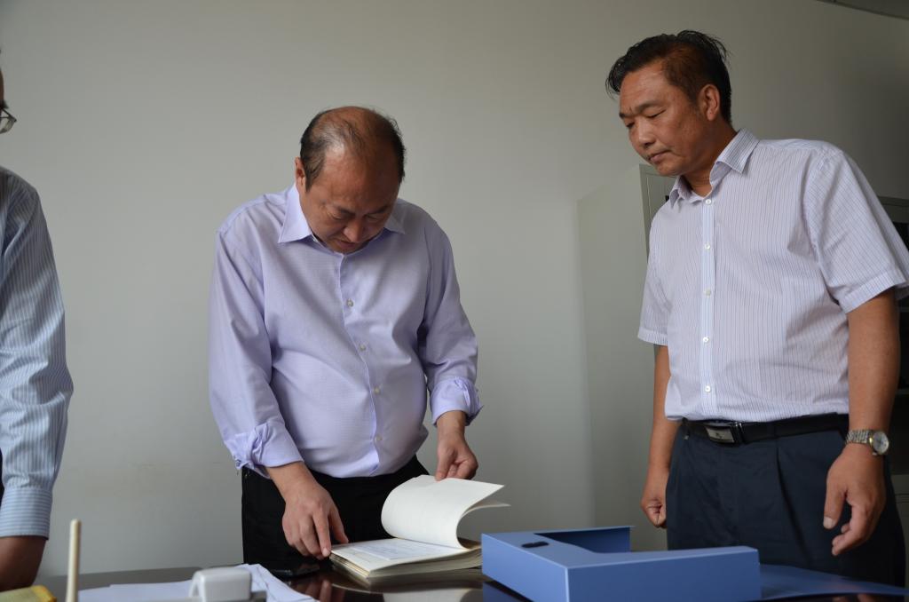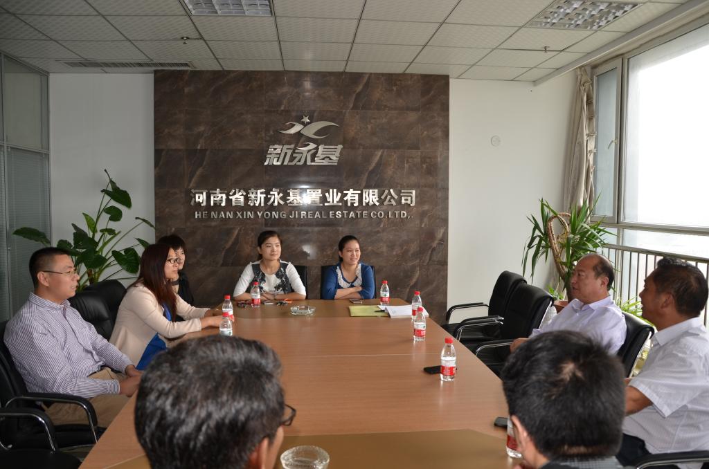 第二站到达河南省新永基置业有限公司,赵建永总经理向杨书记作了详细介绍。杨书记仔细翻阅了往届同学的实习报告等资料,并与在公司就职的两位往届毕业生进行了亲切交谈,杨书记看到学生能很快的学以致用,表示很欣慰。
