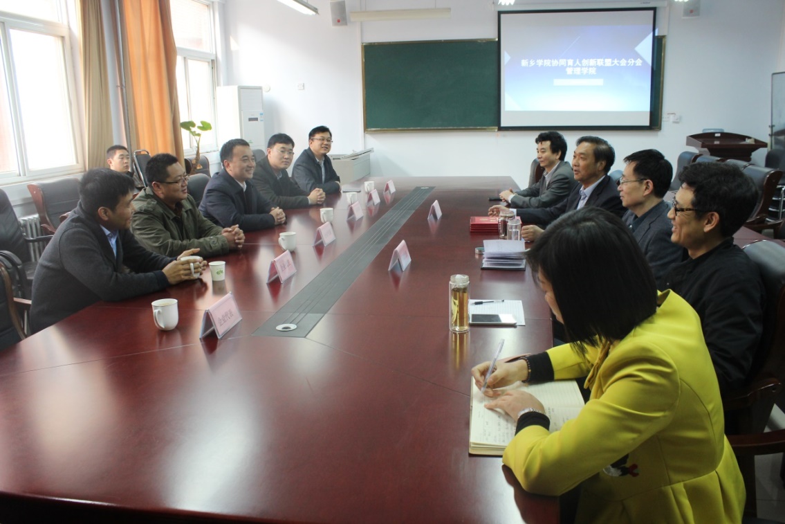 会后,我院学科专业建设理事会理事企业界代表豫盟药业总经理郑华童、新乡智兴商贸有限公司董事长刘传辉、新乡王氏集团有限公司总经理王玉桥、郑州嘉耐铝酸盐有限公司供应链经理田海昌等人移步管理学院会议室,就我院协同育人创新发展进行了深入交流。
